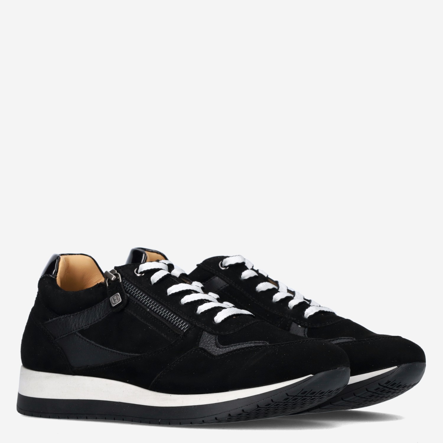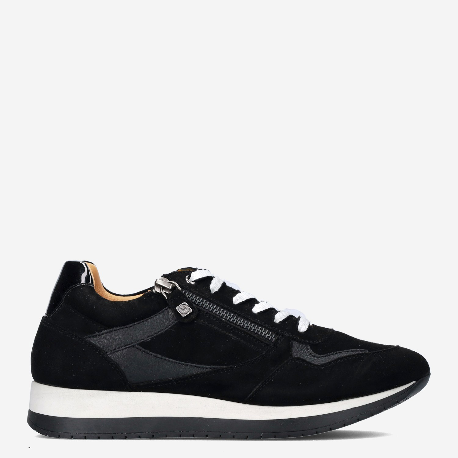 Deze zwarte Sneaker H damesschoen van Helioform is gemaakt van verschillende leersoorten. De sneaker is voorzien van zowel een rits- als vetersluiting voor een gemakkelijke instap. Combineer deze donkere sneaker met een jeans of met een pantalon!