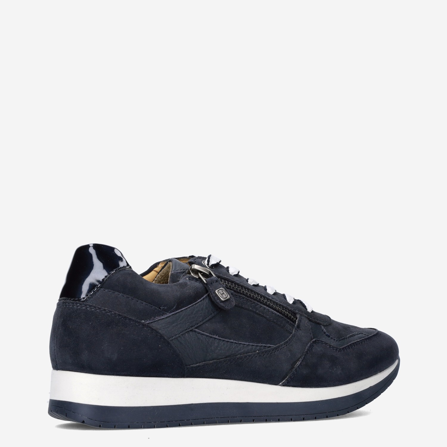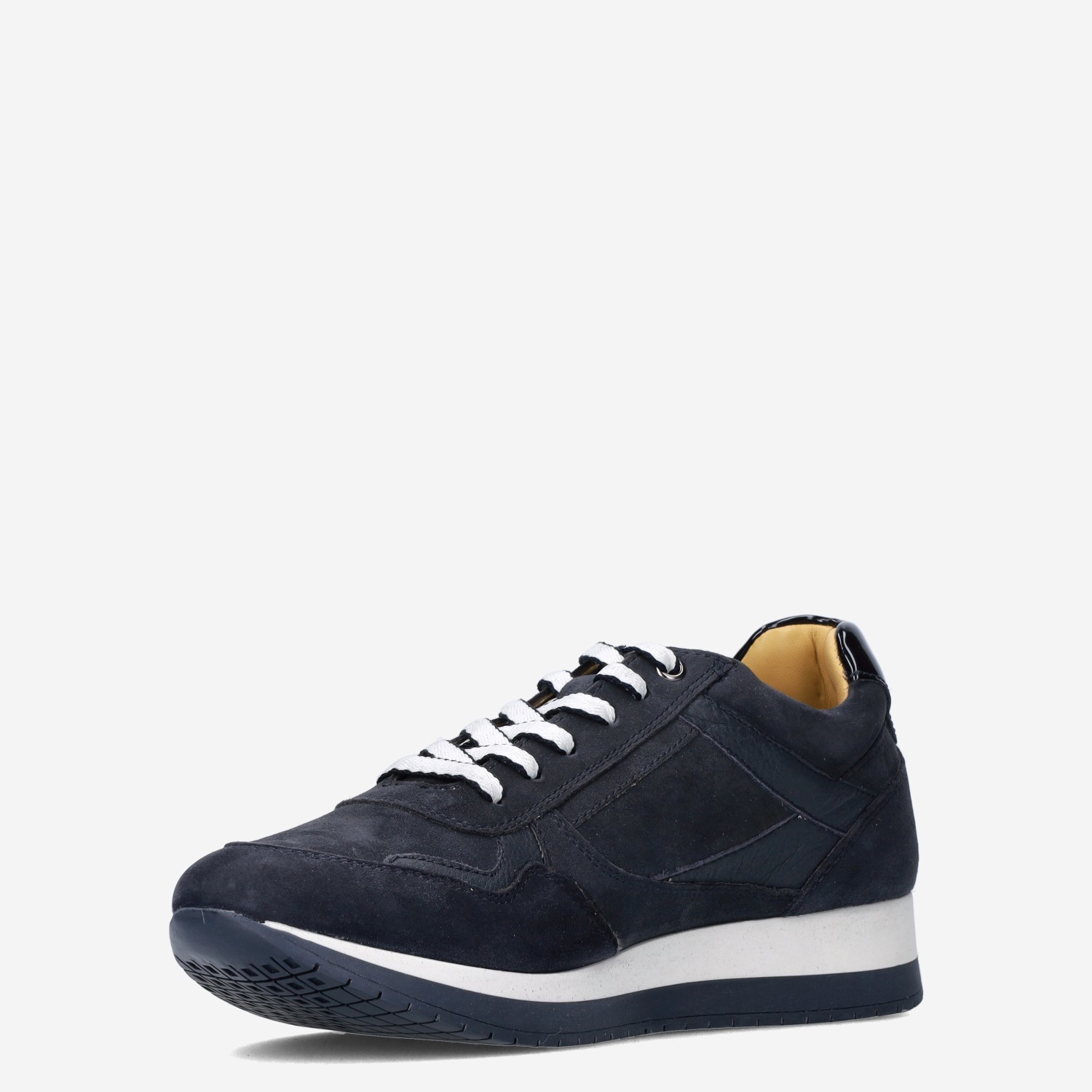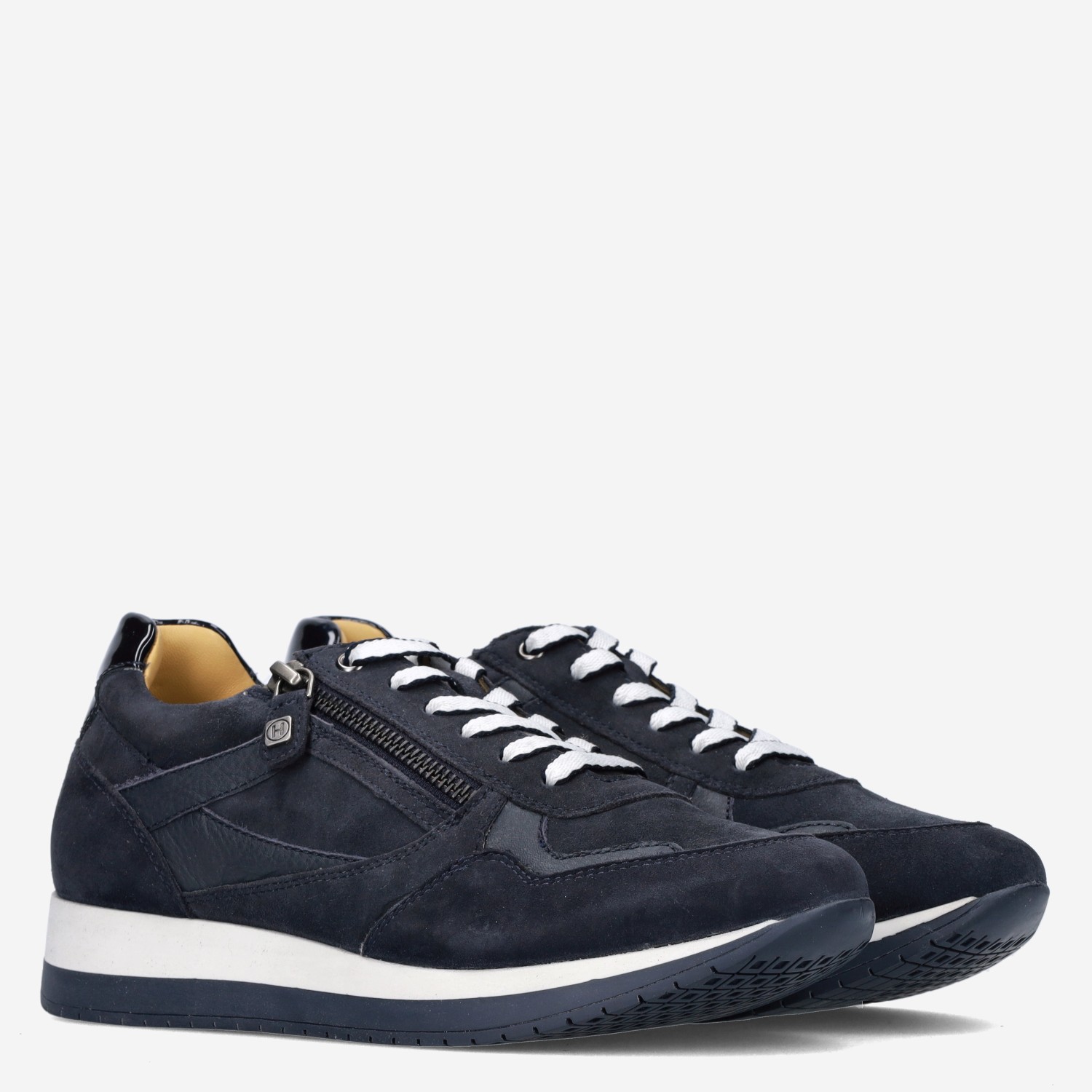 Deze donker blauwe Sneaker H damesschoen van Helioform is gemaakt van verschillende leersoorten. De sneaker is voorzien van zowel een rits- als vetersluiting voor een gemakkelijke instap. Combineer deze sneaker met een jeans.