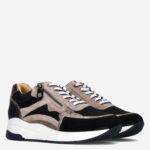 Deze zwart met bruine Sneaker H damesschoen van Helioform is gemaakt van verschillende leersoorten. De sneaker is voorzien van zowel een rits- als vetersluiting voor een gemakkelijke instap. Combineer deze sportieve sneaker met een jeans of pantalon!