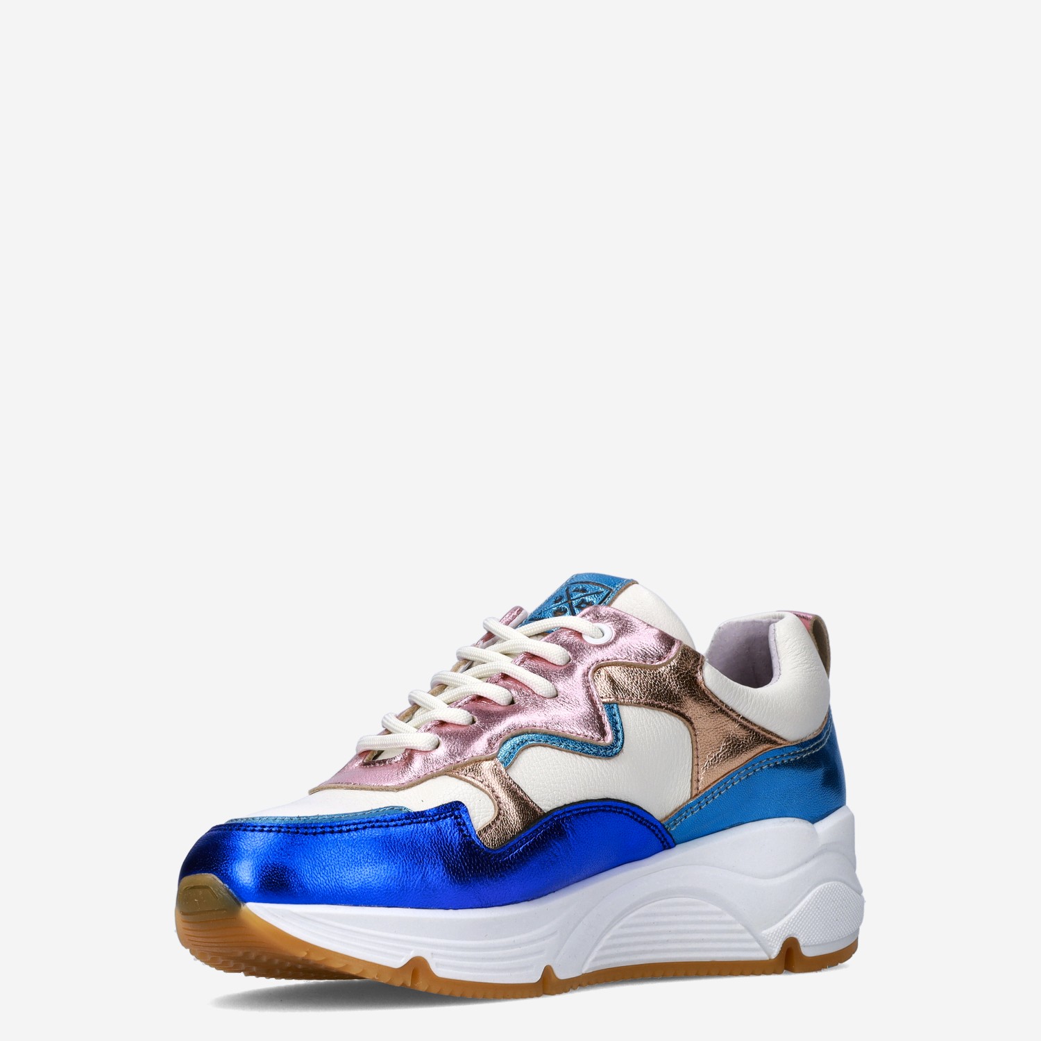 Deze offwhite multicoloured metallic Sneaker voor dames van Bridge is gemaakt van leer in combinatie met imitatieleer. Combineer deze sneaker met een jeans of met een pantalon.