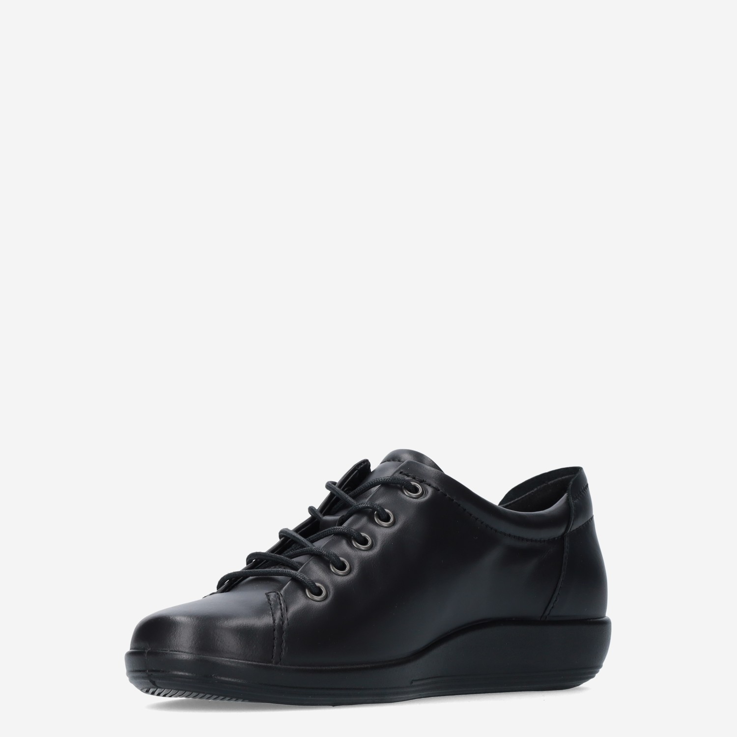 Deze zwarte Ecco Soft 2.0 Tie damessneaker is gemaakt van leer in combinatie met textiel. Draag deze lage sneaker met een jeans.