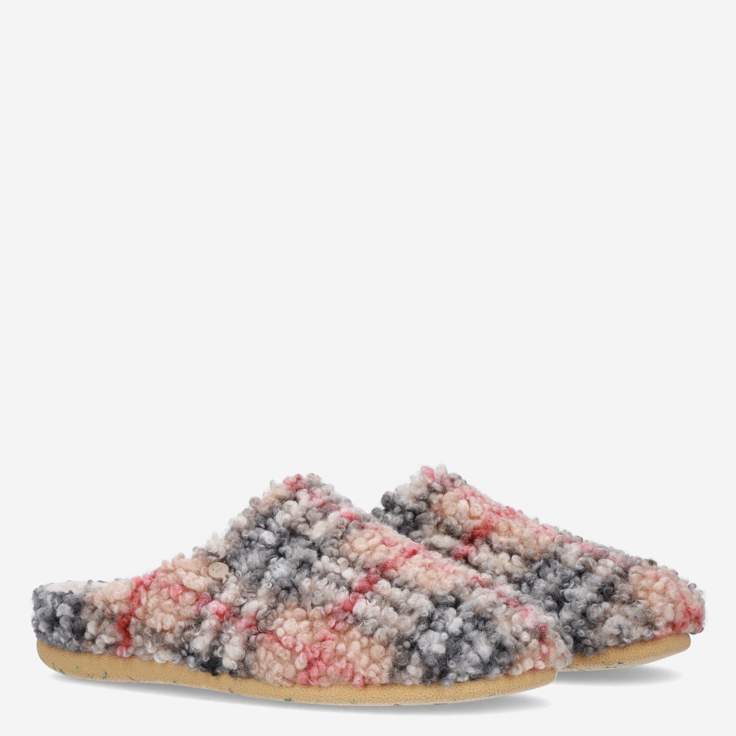 Deze beige multicoloured Hot Potatoes Soft Ruit damespantoffel is gemaakt van zacht polyester, in combinatie met natuurlijk rubber en gerecyclede kunststof snippers. De pantoffel heeft een toffe geruite print met rode en zwarte accenten. Deze zachte pantoffel is heerlijk om binnenshuis te dragen!