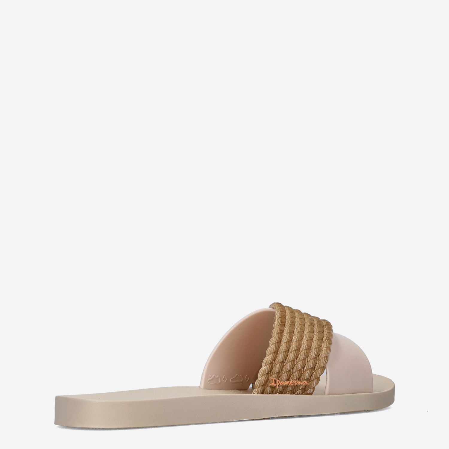 Deze roze, beige Ipanema damesslipper is gemaakt van kunststof.