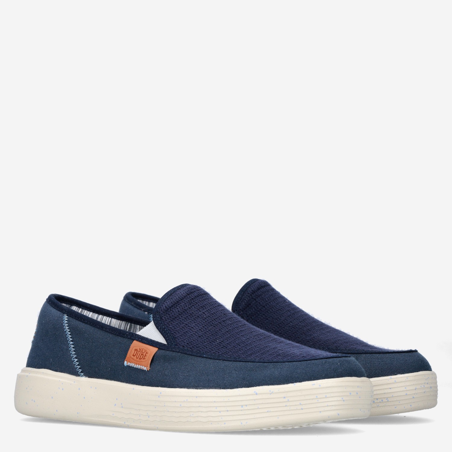 Deze blauwe HEYDUDE Sunapee hereninstapper is gemaakt van textiel, in combinatie met mesh en canvas. Draag deze instapper met een lichte broek!
