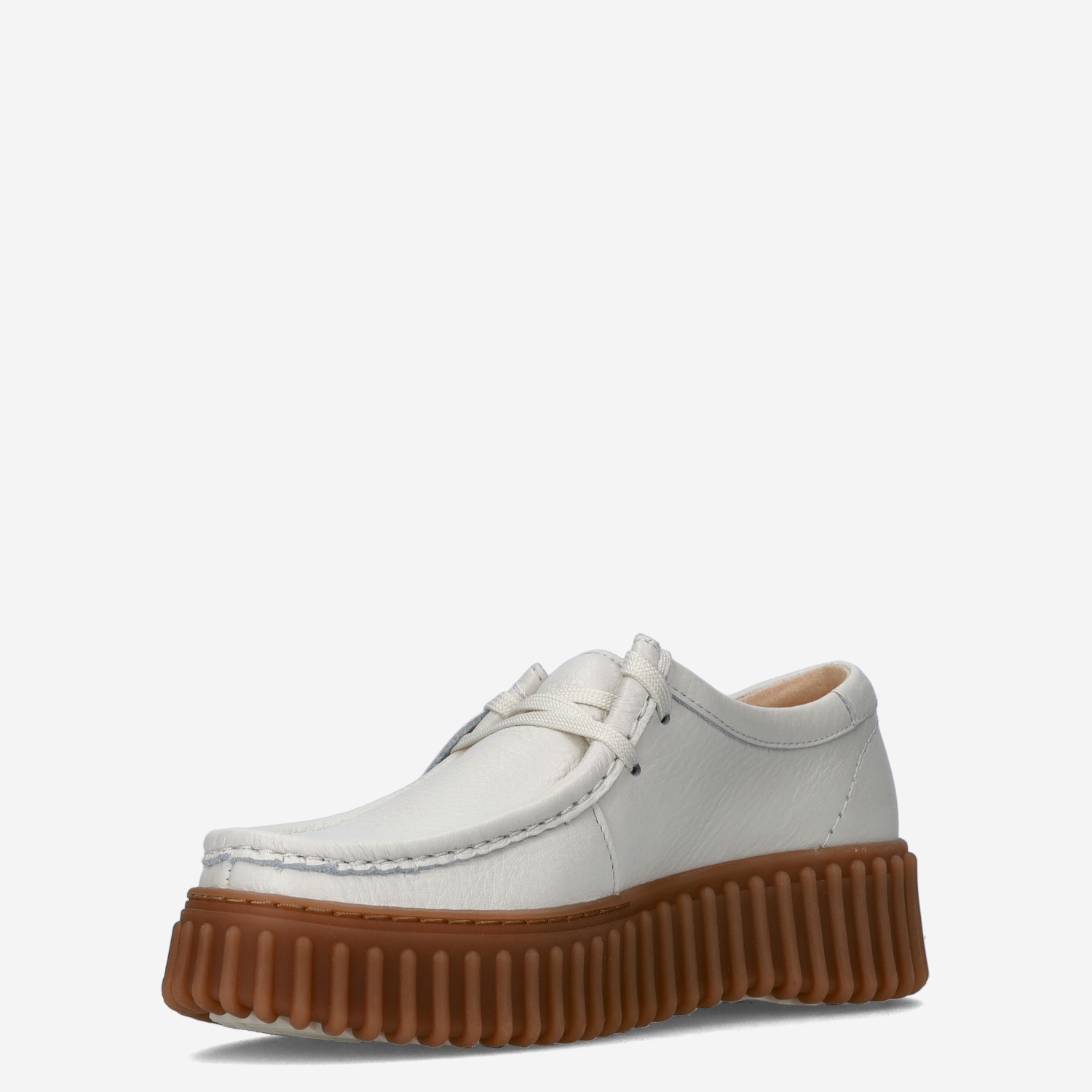 Deze witte klassieke Torhill Bee damesschoen van Clarks is gemaakt van wasachtig leer.