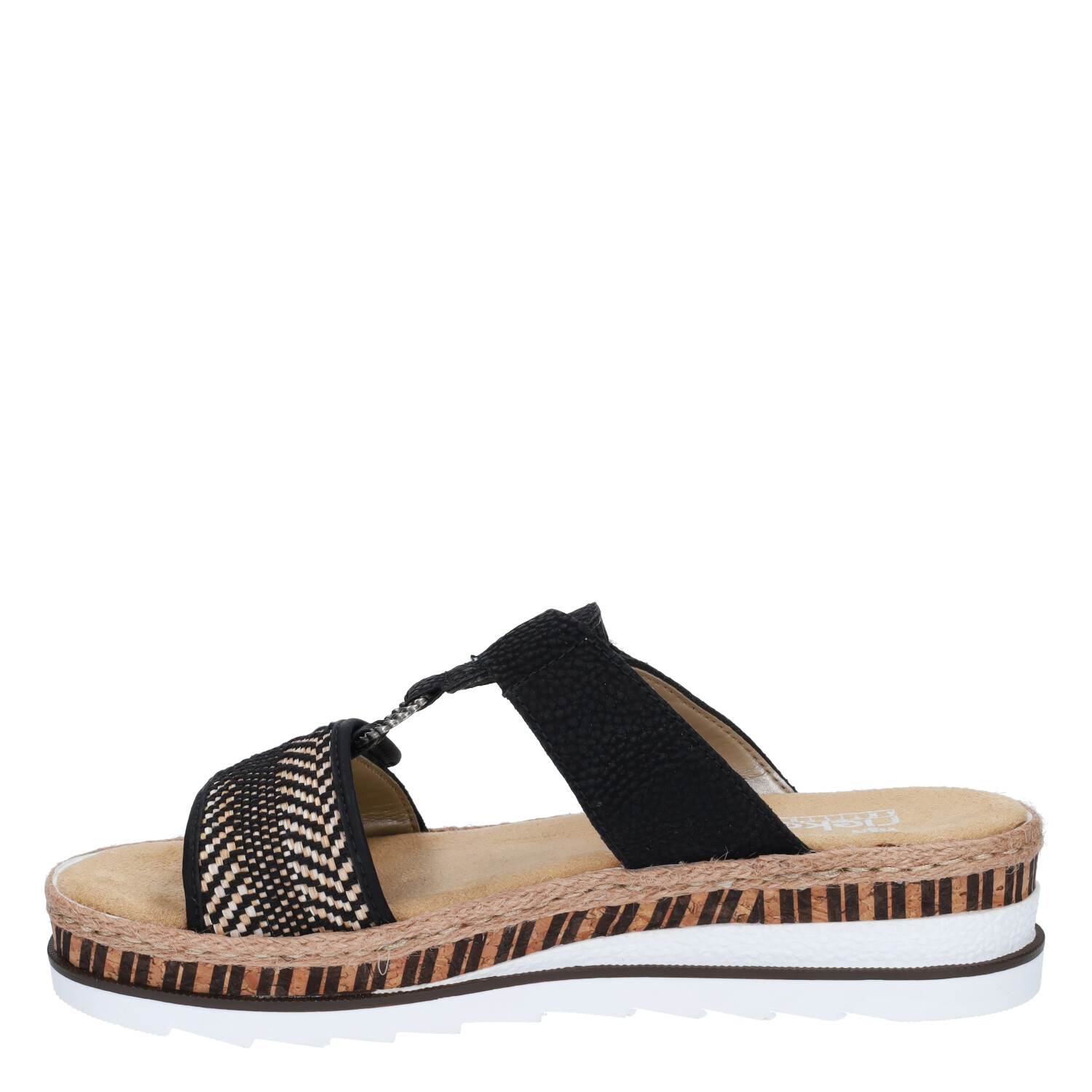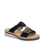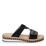 Deze zwarte Rieker Toscana damesslipper komt uit de nieuwe collectie van Rieker. De slipper is gemaakt van synthetisch materiaal, in combinatie met kunststof. Ook kent de slipper een klittenbandsluiting. Combineer deze slipper met een witte broek!