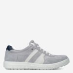 Deze grijze Twist herensneaker van Jomos is gemaakt van leer/suède in combinatie met textiel. De schoen is aan de zijkant voorzien van witte overlays voor een sportieve uitstraling. Combineer deze sneaker onder een fijne spijkerbroek.