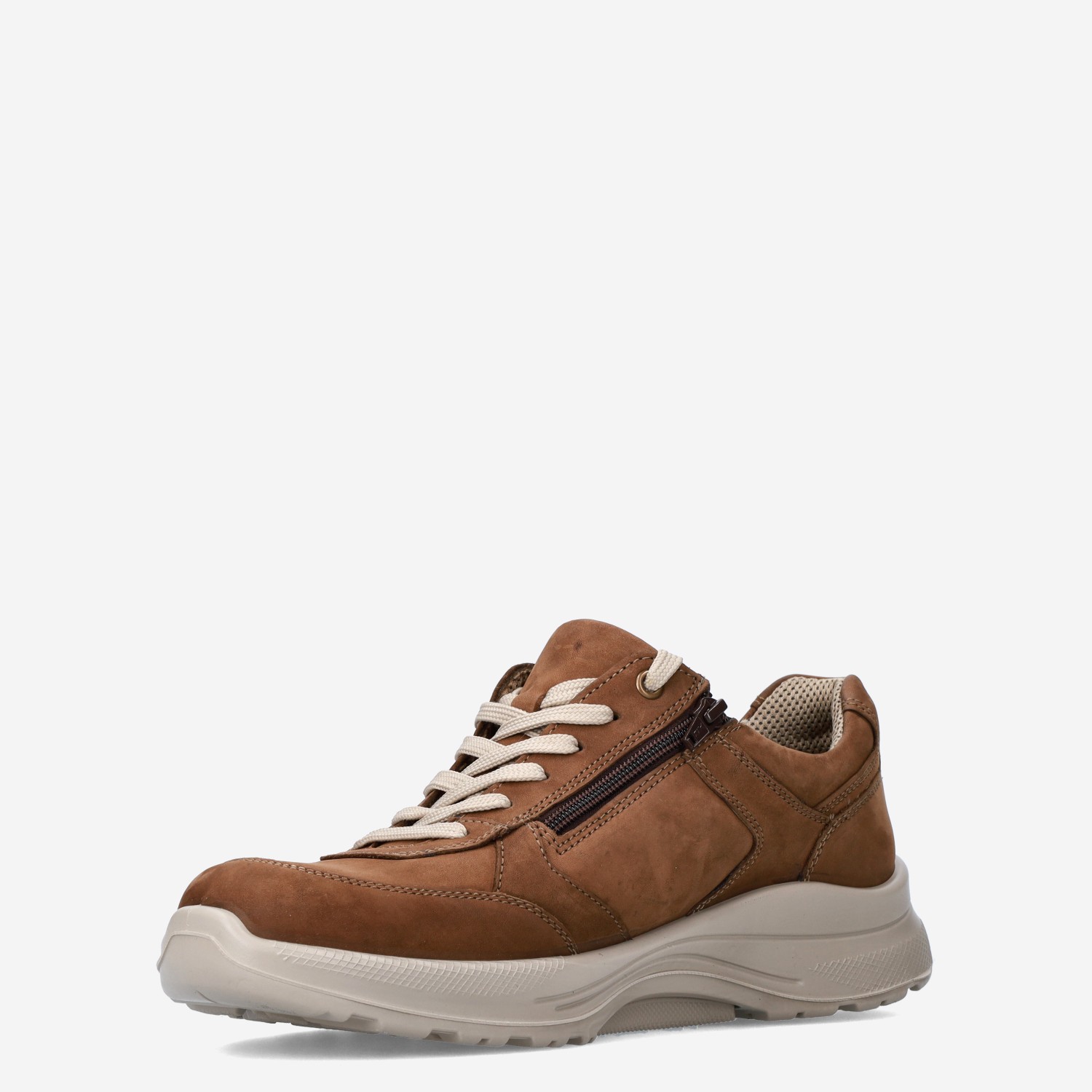 Deze bruine Twist herensneaker van Jomos is gemaakt van leer in combinatie met textiel. De schoen is voorzien van zowel een rits- als vetersluiting voor een gemakkelijke in- en uitstap. Combineer deze sneaker onder een pantalon of jeans.
