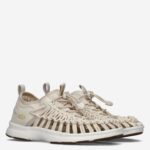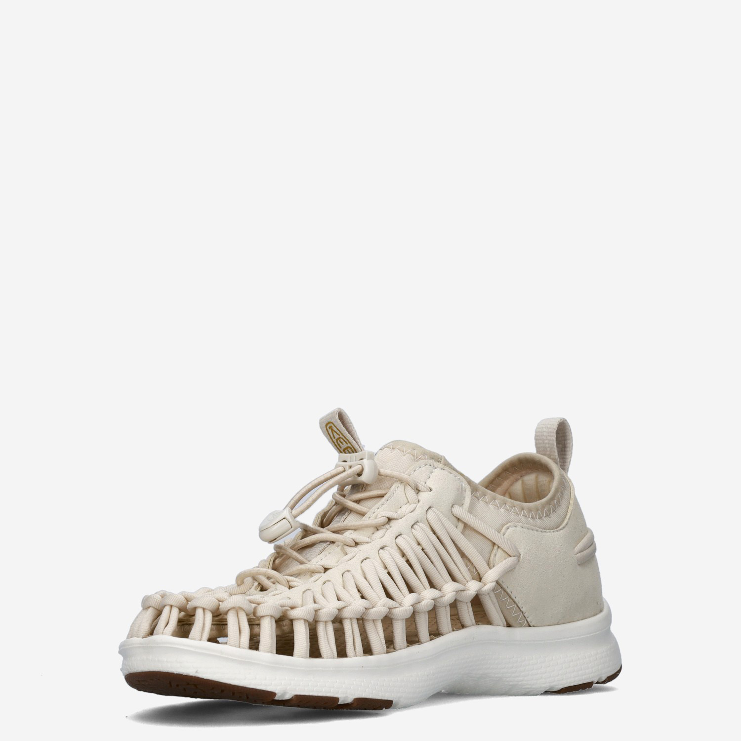Deze witte Uneek damessandaal van Keen is gemaakt van gerecycled PET in combinatie met textiel.