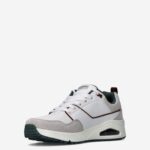 Deze witte/offwhite Skechers Uno Retro One herensneaker is gemaakt van verschillende overlays van leer, suède en duraleer. De sneaker is voorzien van een comfortabele binnenzool met Skechers Air-Cooled Memory Foam® en heeft een Skech-Air®-tussenzool met zichtbare airbag. Combineer deze sneaker met een fijne jeans!