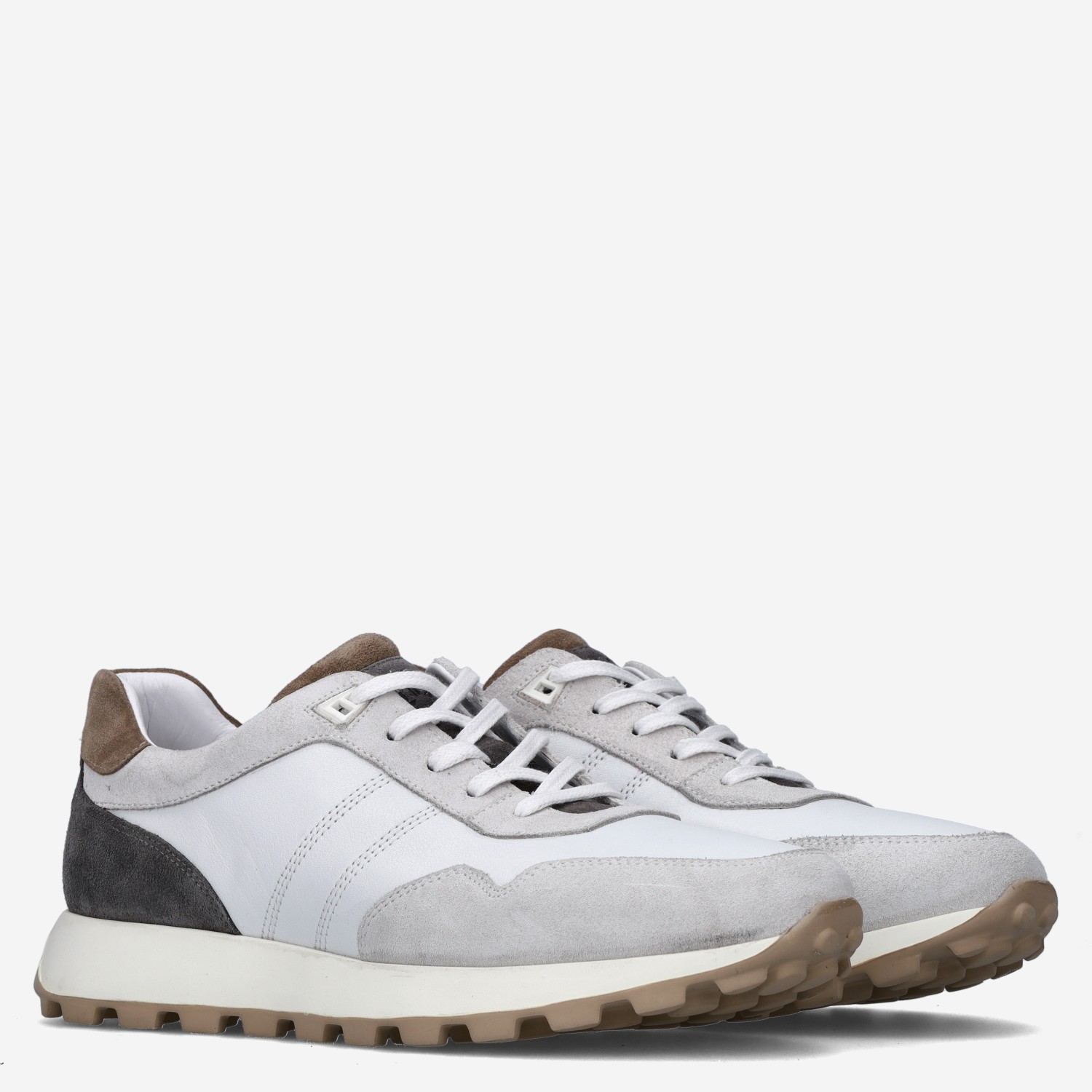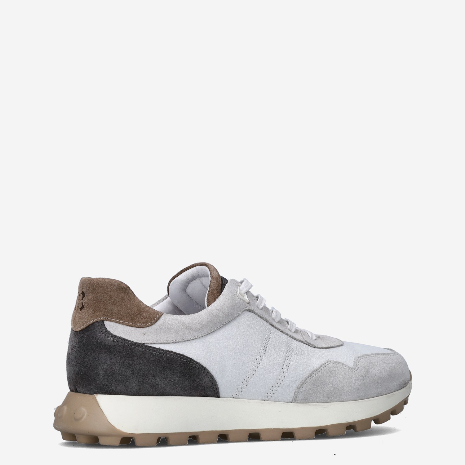 Deze grijs met witte Valenciana herensneaker van Berkelmans is gemaakt van suède in combinatie met andere leersoorten. Deze stijlvolle sportieve sneaker kun je goed combineren onder een jeans of pantalon!