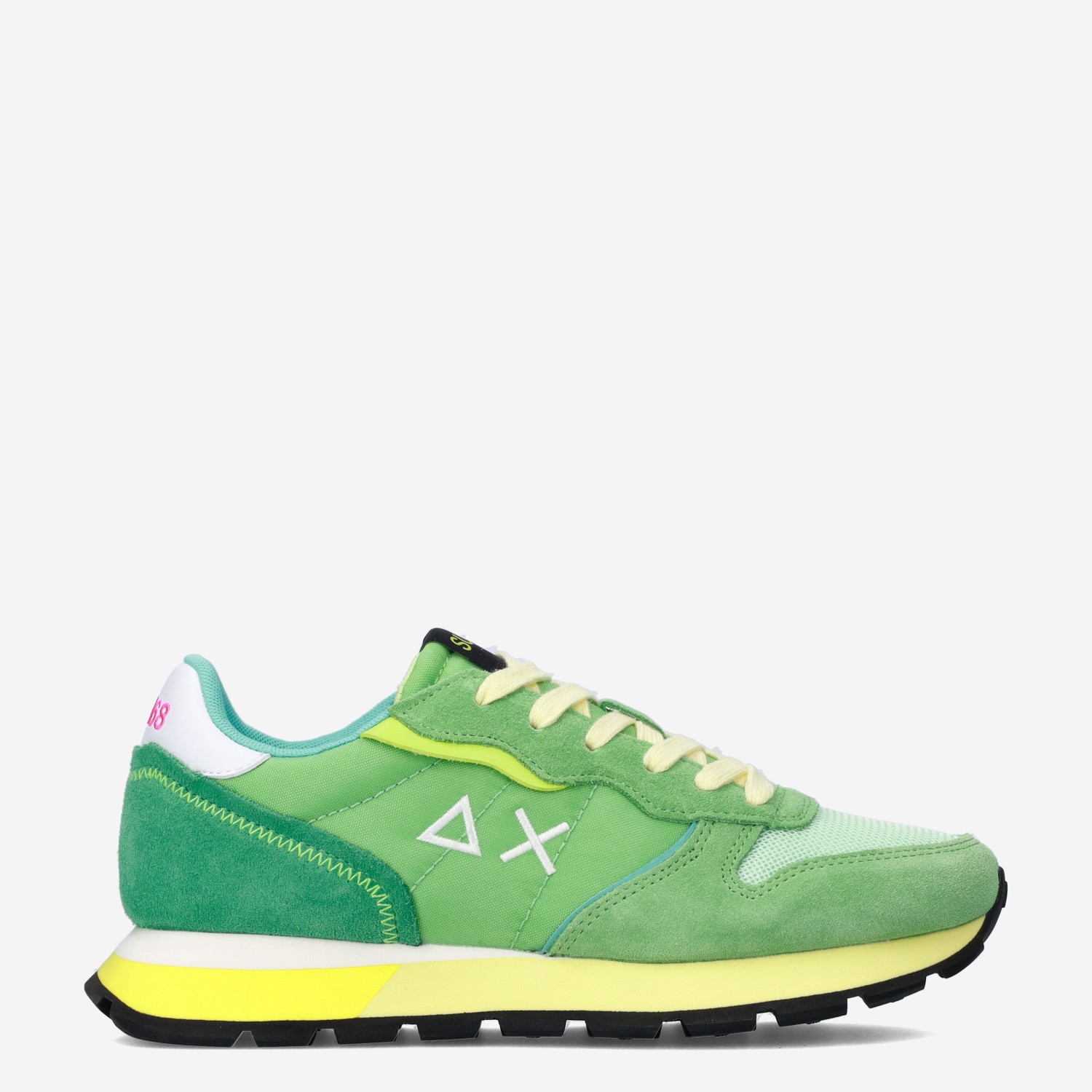 Deze groene Verde Menta damessneaker van Sun68 is gemaakt van textiel in combinatie met suède. De sneaker is voorzien van een vetersluiting (plus extra paar veters) en heeft een uitneembaar voetbed. Combineer deze sneaker onder een pantalon of spijkerbroek.