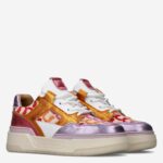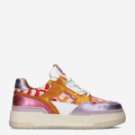 Deze opvallende multicoloured Walton damessneaker van DWRS is gemaakt van leer in combinatie met textiel. De sneaker is voorzien van oranje en paarse metallic accenten en heeft kleurrijke gebreide overlays. Combineer deze toffe sneaker met jouw favoriete outfit!