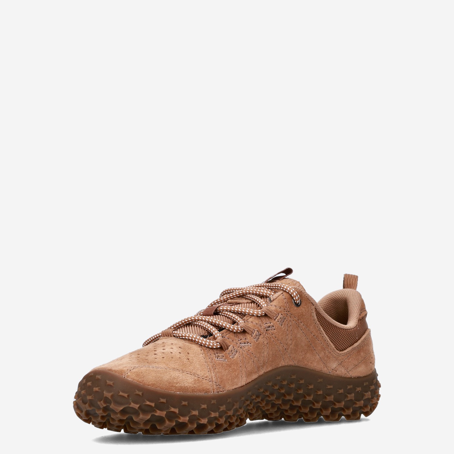 Deze bruine Wrapt damesschoen van Merrell is gemaakt van suède en heeft een waterdicht membraan. De wandelsneaker heeft een opvallend design die de vorm van de menselijke voet nabootst om deze zo in zijn natuurlijke vorm te behouden. Deze barefoot wandelschoen biedt daarnaast voldoende grip door de Quantum Grip rubberen buitenzool.
